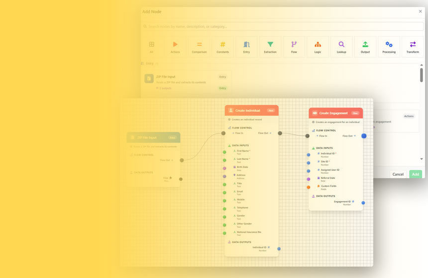 Flexible data import tools let you control the flow of data thorugh your organisation